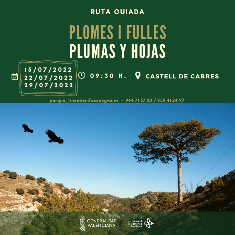 - Inscripció: Es tracta d’una activitat gratuïta, però les places són limitades, ja que l’aforament és reduït. Reserva la teua indicant nom, telèfon mòbil, població i nombre de persones (especificant menors en el seu cas) en: 964 715 720 / 650 412 497 – parque_tinenbenifassa@gva.es